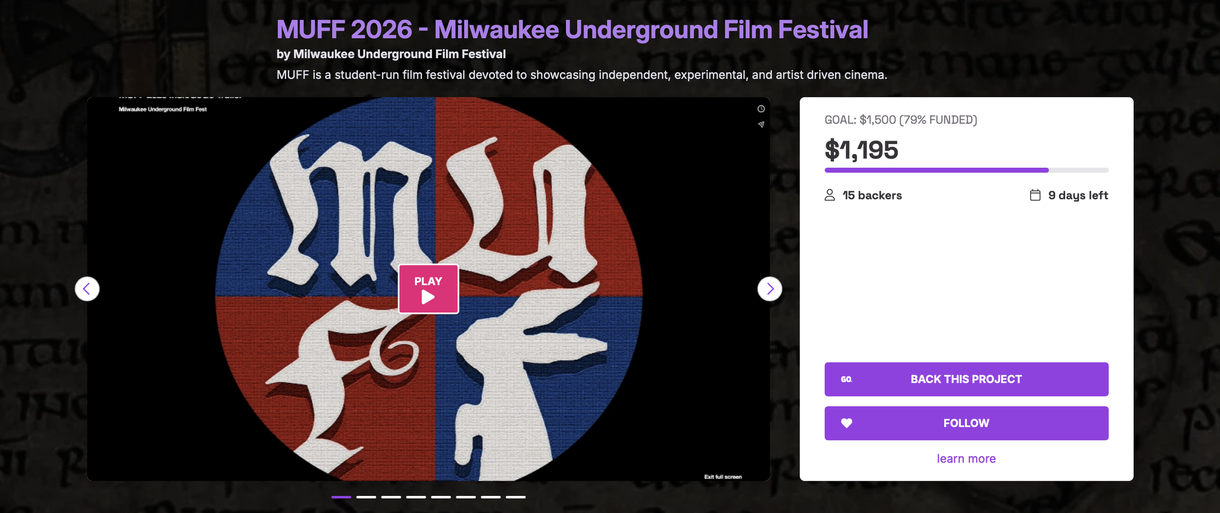 Milwaukee Underground Film Festival is a vibrant, student-run film festival focused on celebrating experimental and artist-made cinema. For over 25 years, we’ve championed filmmakers pushing boundaries and challenging norms, amplifying voices often unheard in mainstream spaces. Our festival believes in cinema's unique power as a communal art form, which generates creative and critical discourse and inspires open-mindedness through creativity.